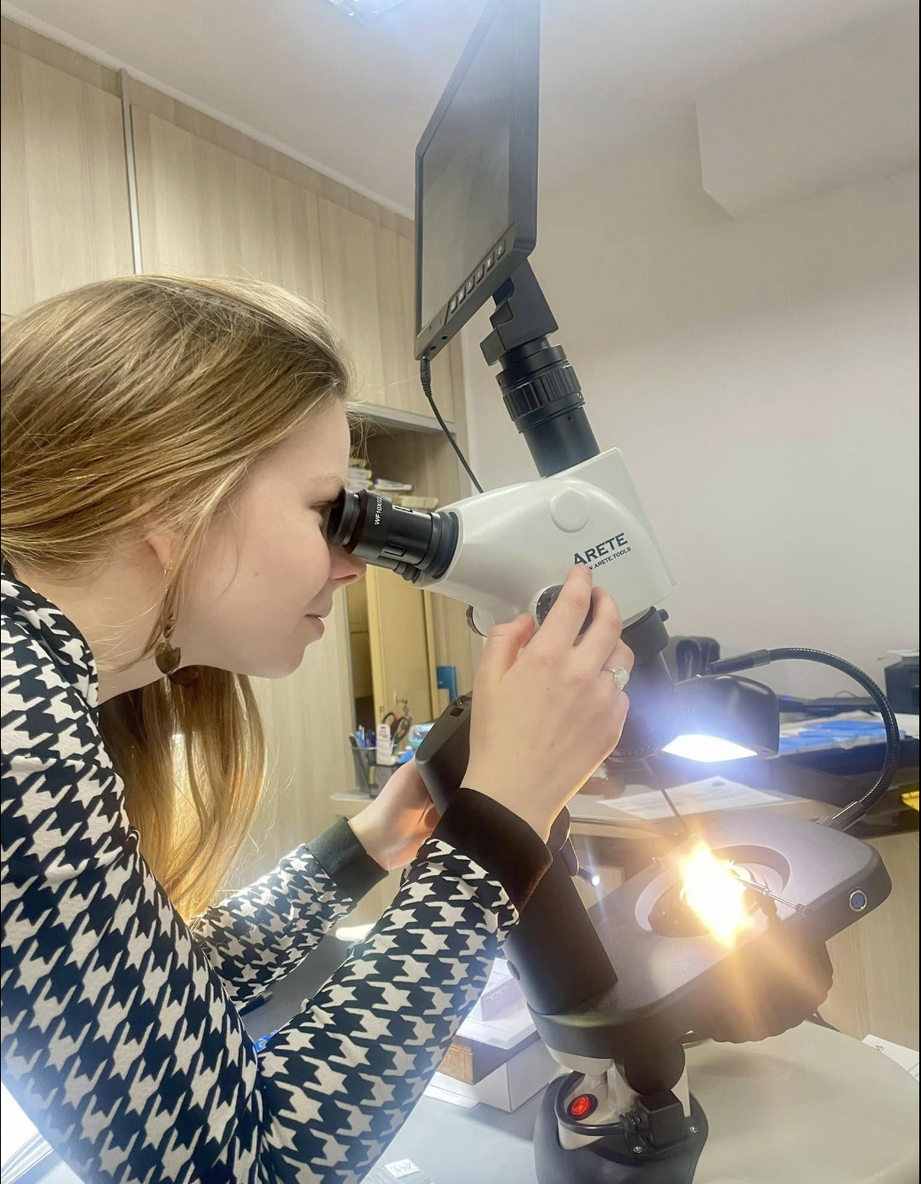 obserwację pod mikroskopem gemmologicznym (inkluzje, cechy wzrostu, struktury naturalne i syntetyczne)