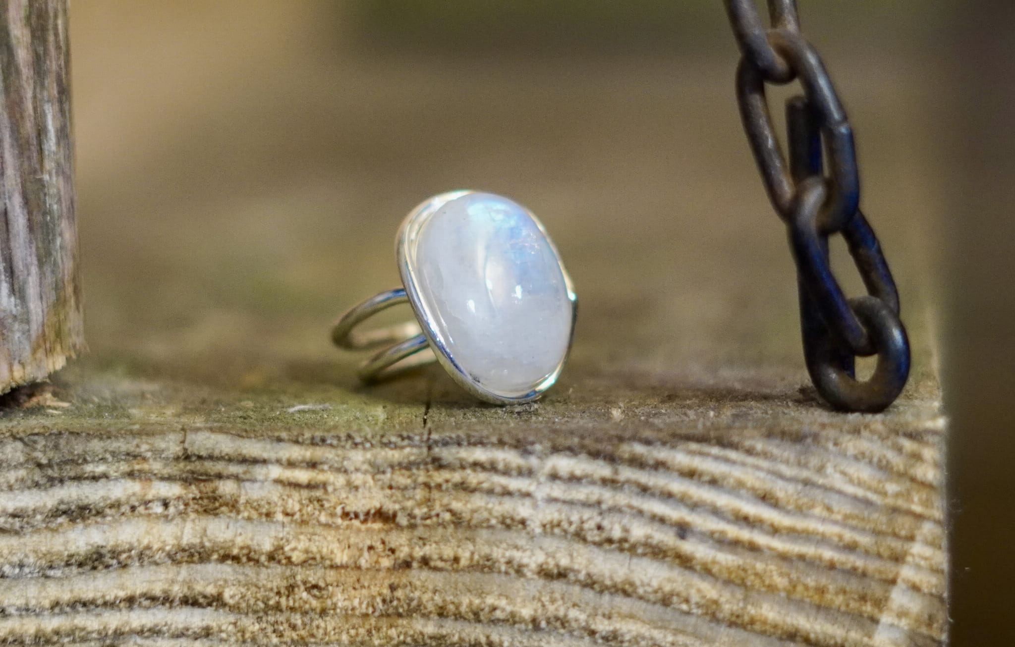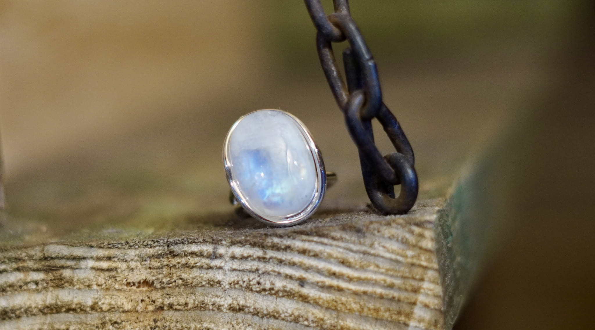 Kamień księżycowy tęczowy pierścionek- połączenie ze Źródłem