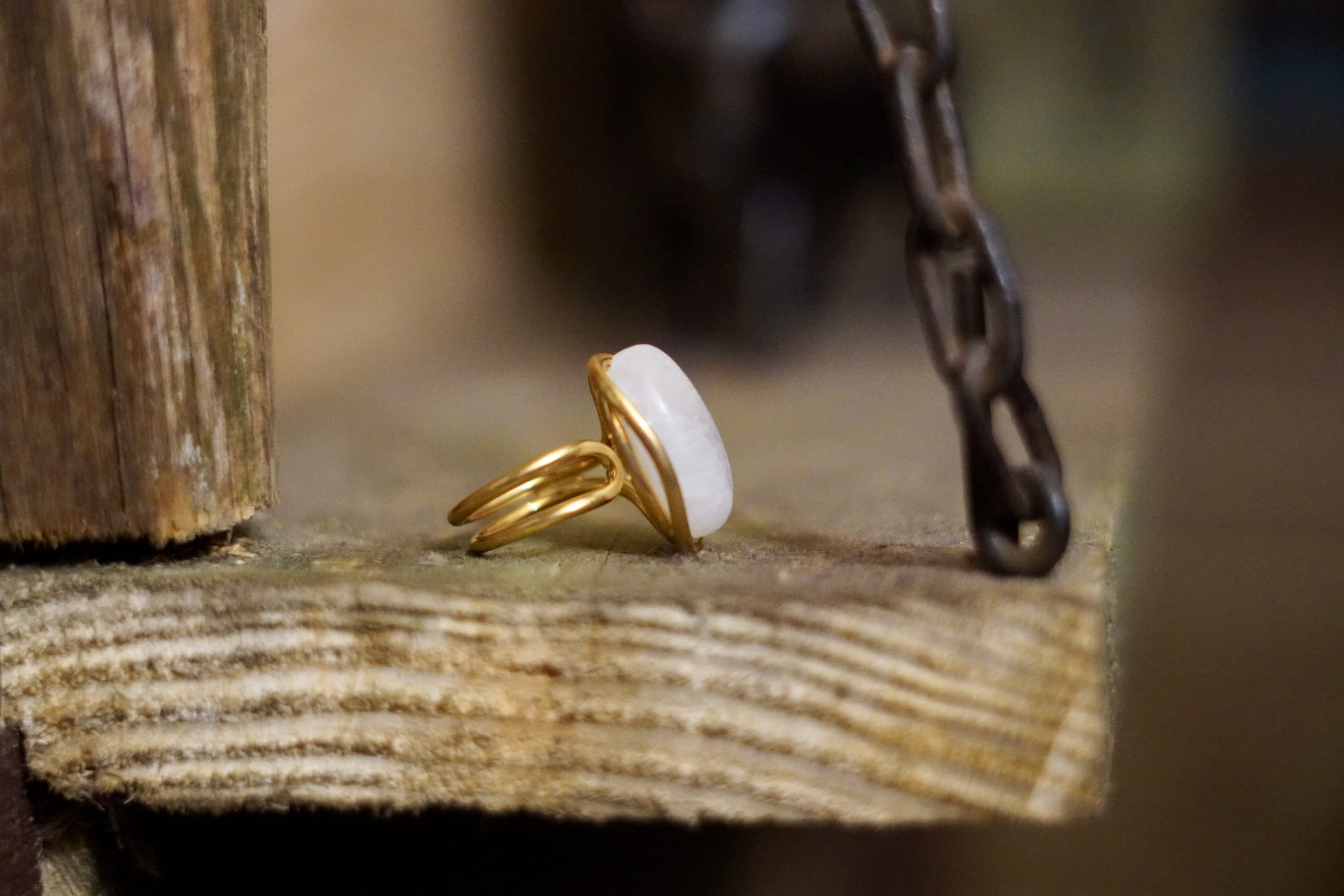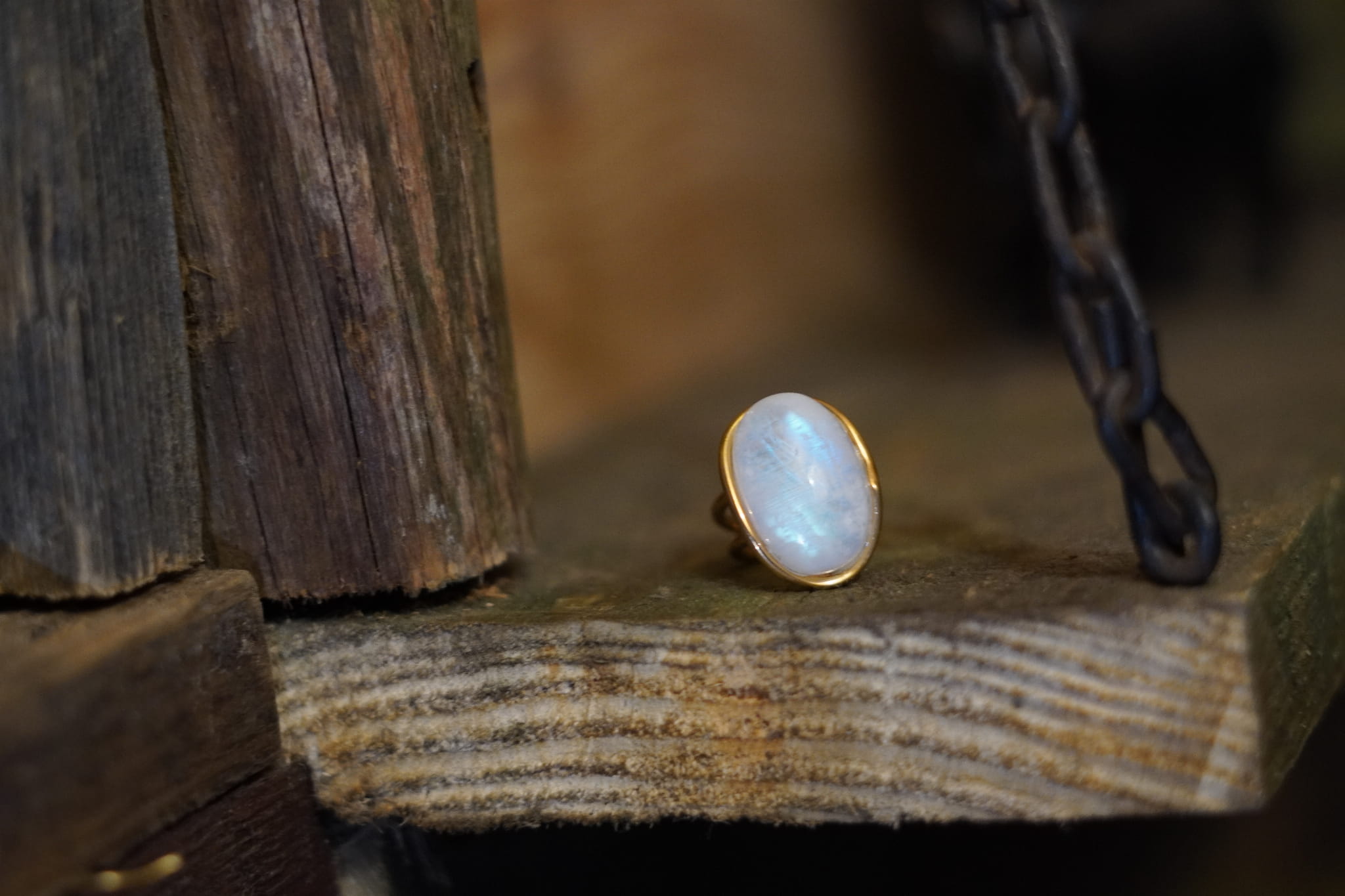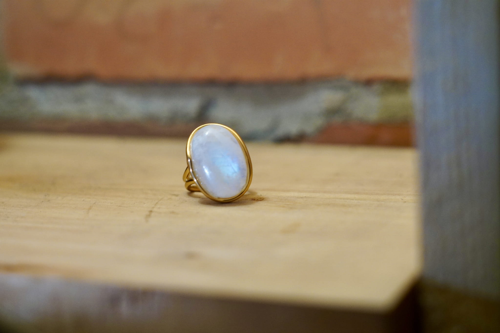 Kamień księżycowy tęczowy pierścionek- połączenie ze Źródłem- Pozłacany