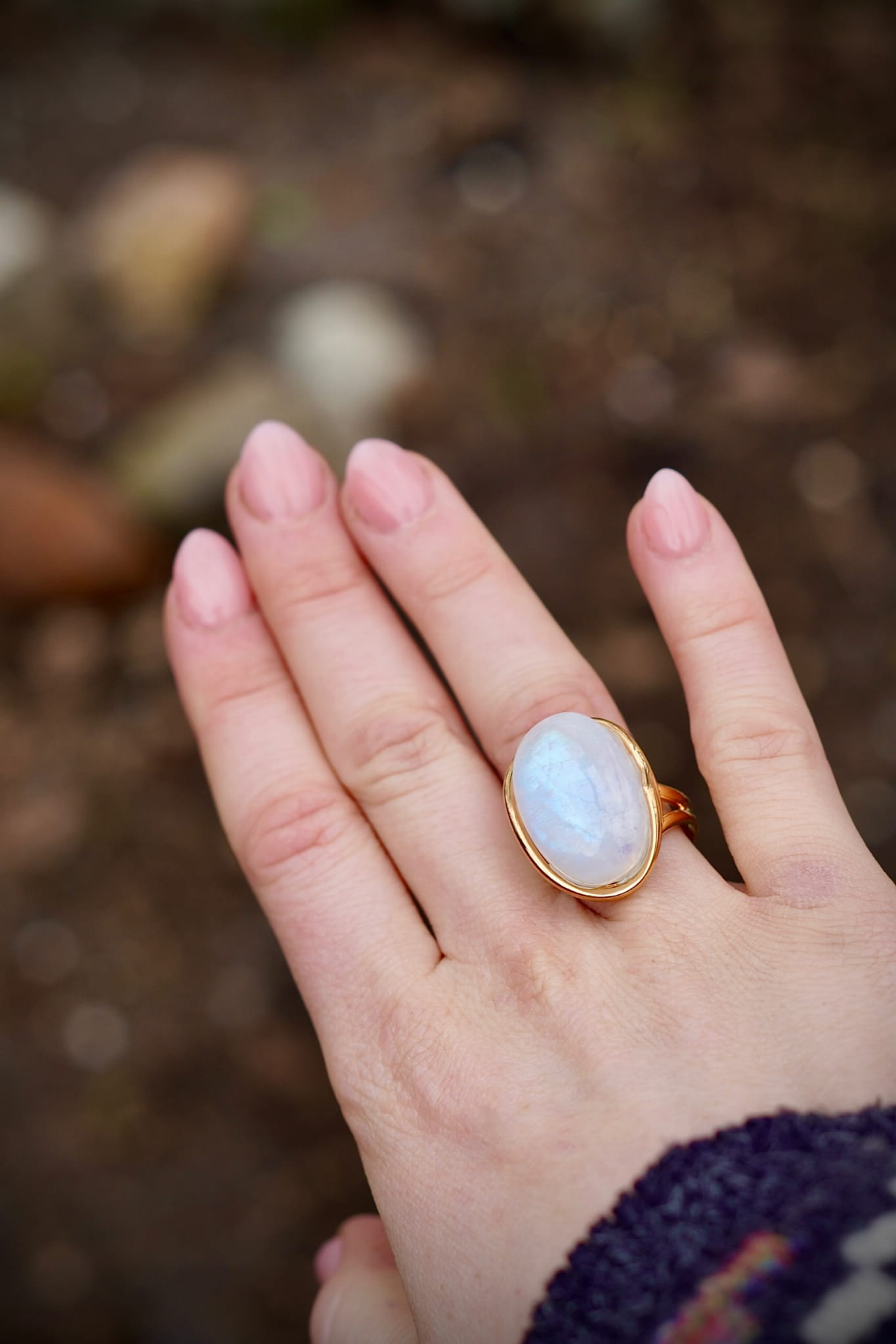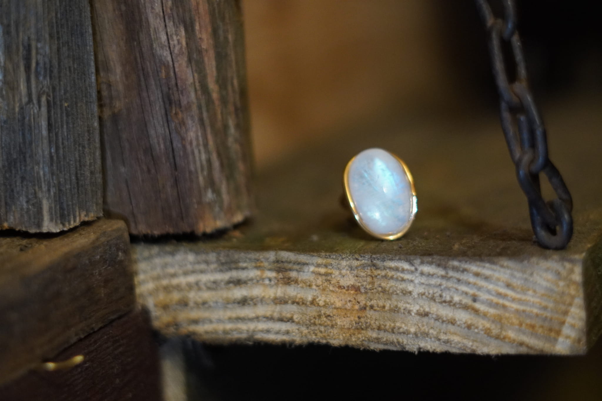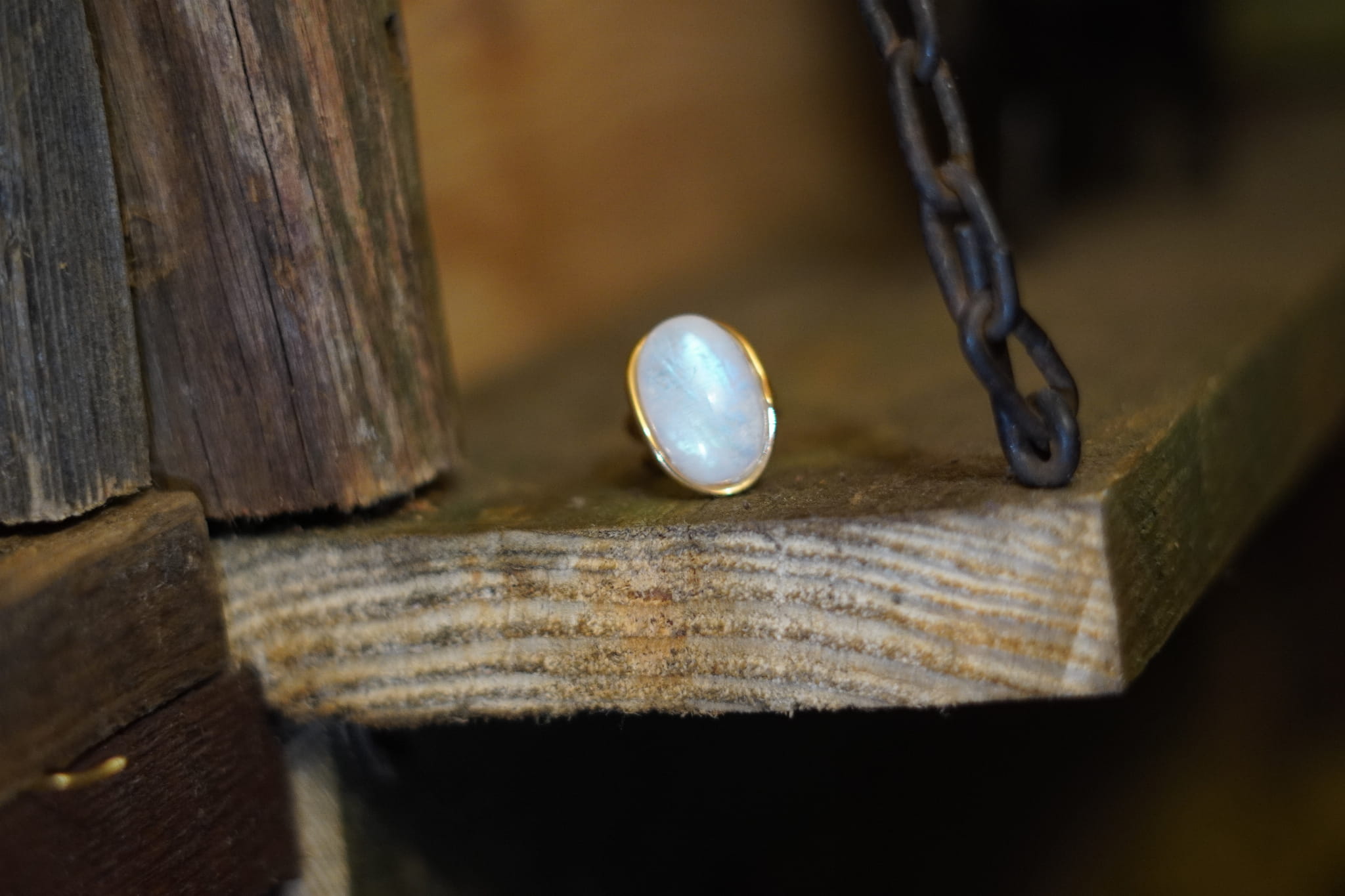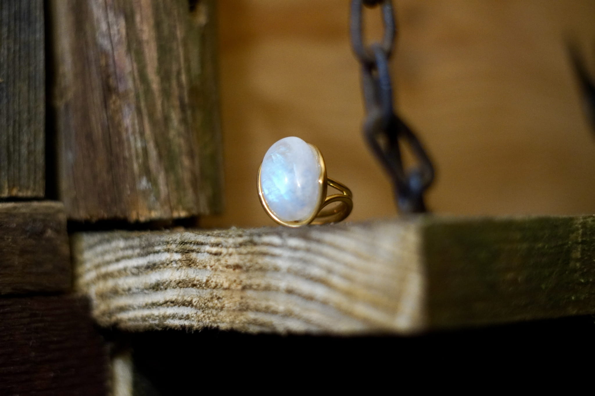 Kamień księżycowy tęczowy pierścionek- połączenie ze Źródłem- Pozłacany