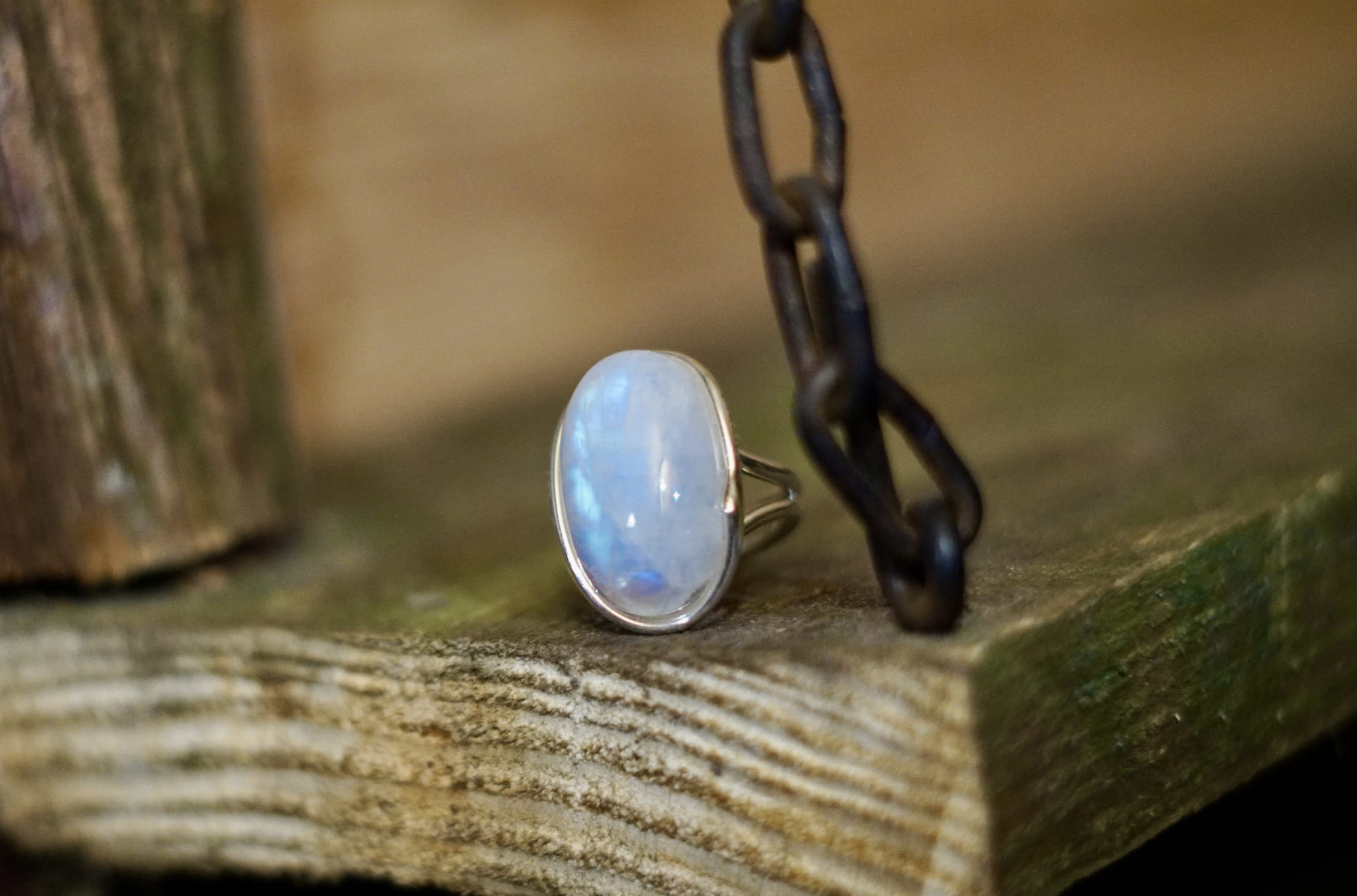 Kamień księżycowy tęczowy pierścionek- połączenie ze Źródłem