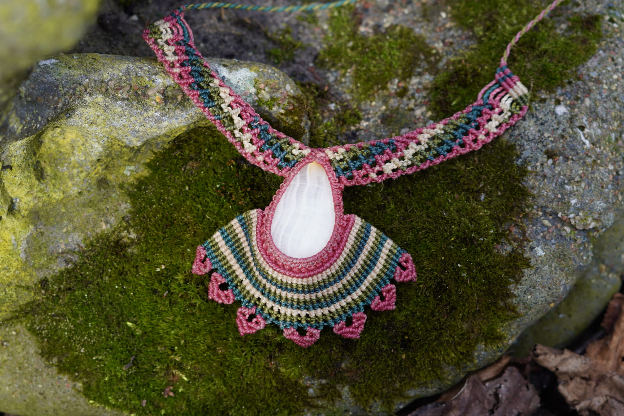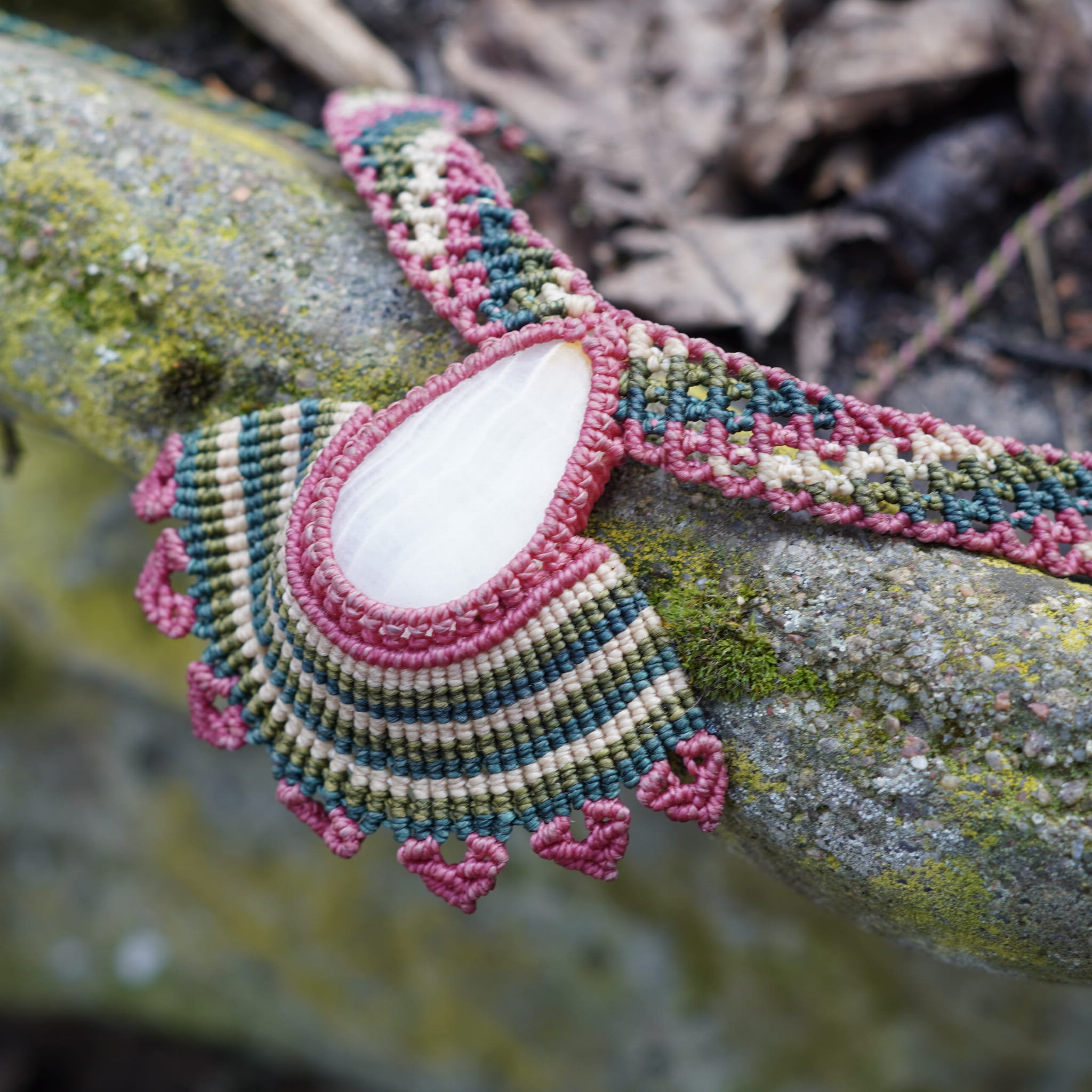 Ręcznie i misternie robiony naszyjnik makrame. Każdy supełek zaciskany był z uzdrawiająca intencją.