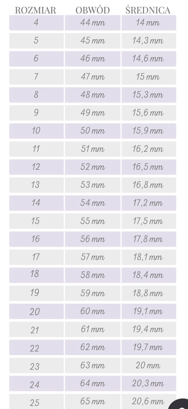 Pierścień ma regulowany rozmiar w zakresie L, co odpowiada rozmiarom 19 i większe. Jeśli nie znasz swojego rozmiaru, możesz go łatwo zmierzyć za pomocą centymetra, korzystając z tabeli w ostanim zdjęciu poglądowym produktu.