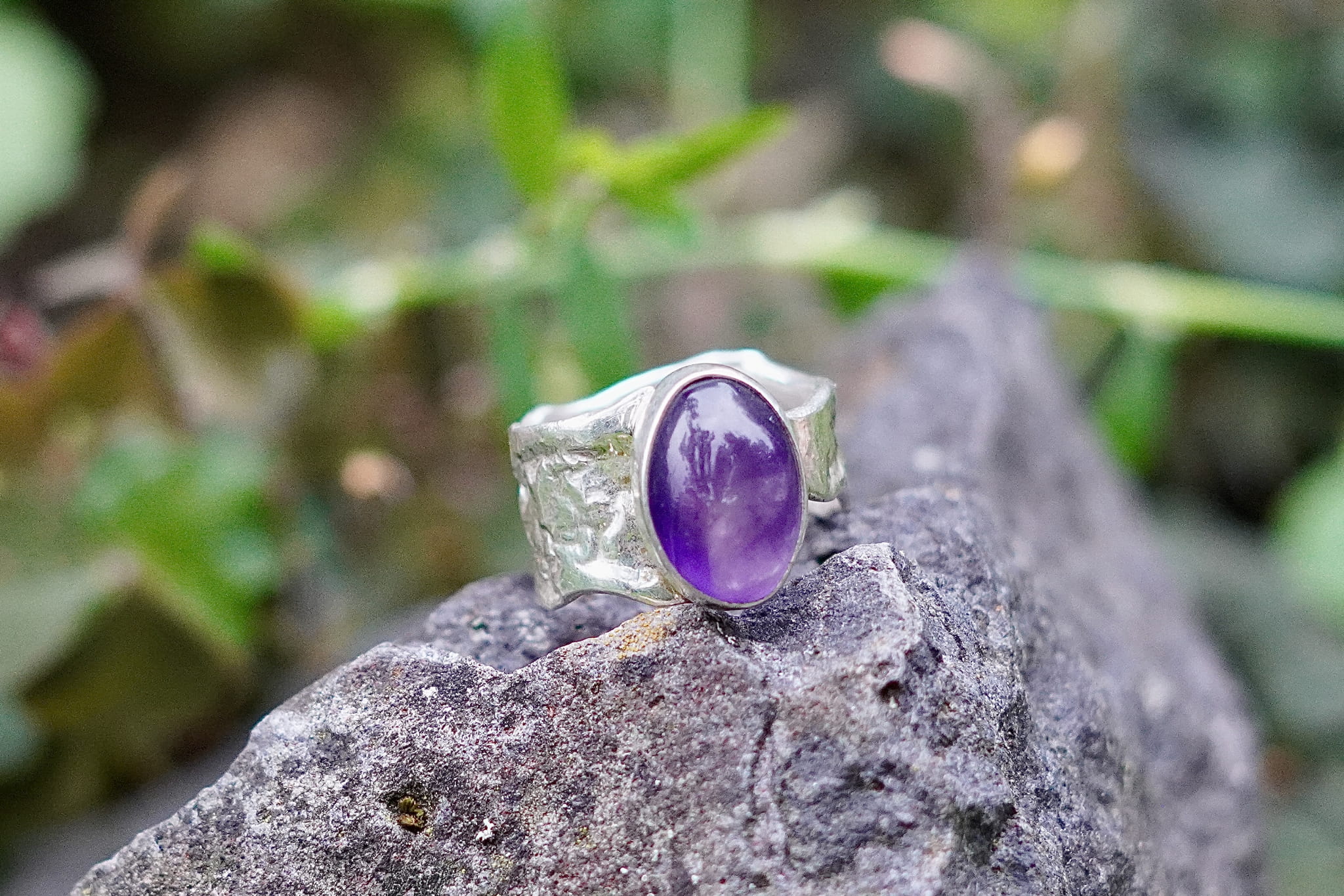 Pierścień z Ametystu- sen, spokój, trzecie oko- rozmiar 16
